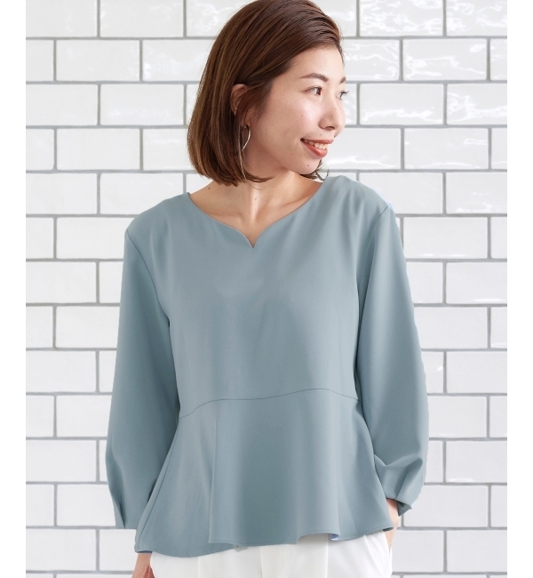 【送料無料】 ぺプラムデザインが女性らしいティーブラウス。腰高の切り替えから広がるシルエットで、テーパードパンツとの相性抜群。デコルテがキレイに見えるハートネックのの襟ぐりや、程よいボリュームスリーブでさりげないフェミニンデザインで通勤スタイルにもオススメのブラウス。しっとりとした肌触りの生地感が着心地にも優れているのも好ポイントです。 ルクールブラン/le.coeur blanc トップス|シャツ・ブラウス